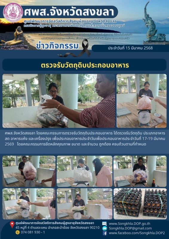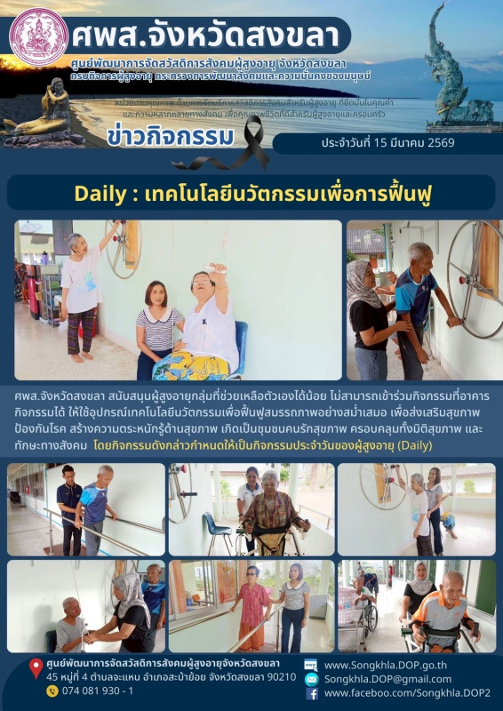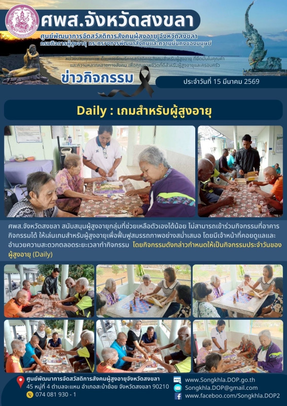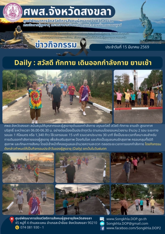 ศพส.จังหวัดสงขลา ขอรายงานกิจกรรม ประจำวันที่ 15 มีนาคม 2569 จำนวน 5 กิจกรรม ดังนี้