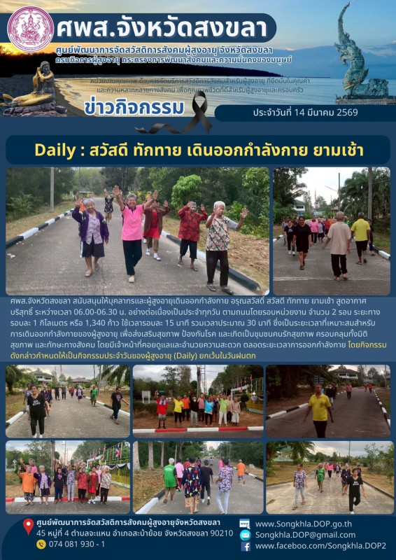 ศพส.จังหวัดสงขลา ขอรายงานกิจกรรม ประจำวันที่ 14 มีนาคม 2569 จำนวน 2 กิจกรรม ดังนี้