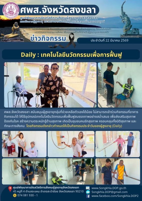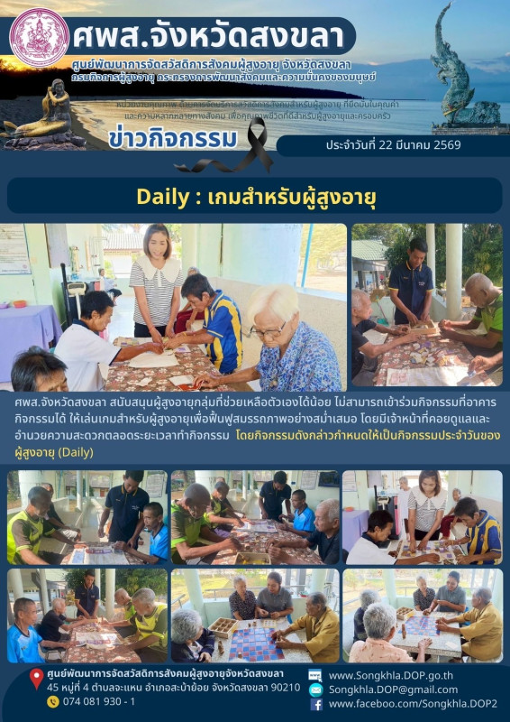 ศพส.จังหวัดสงขลา ขอรายงานกิจกรรม ประจำวันที่ 22 มีนาคม 2569 จำนวน 3 กิจกรรม ดังนี้