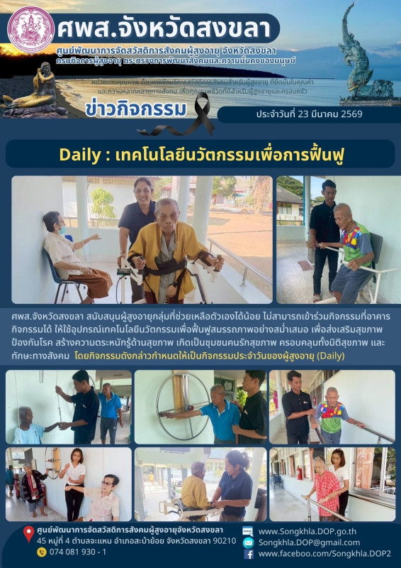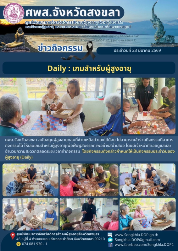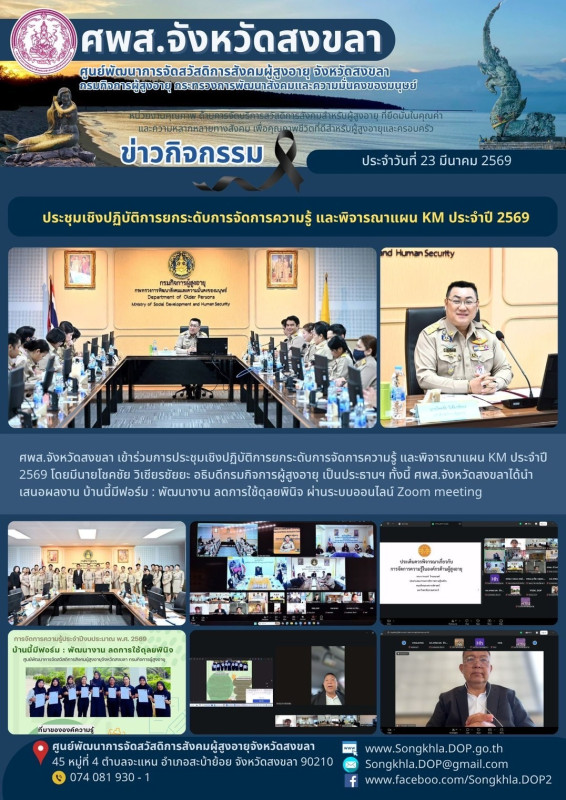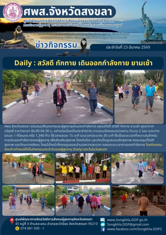 ศพส.จังหวัดสงขลา ขอรายงานกิจกรรม ประจำวันที่ 23 มีนาคม 2569 จำนวน 4 กิจกรรม ดังนี้