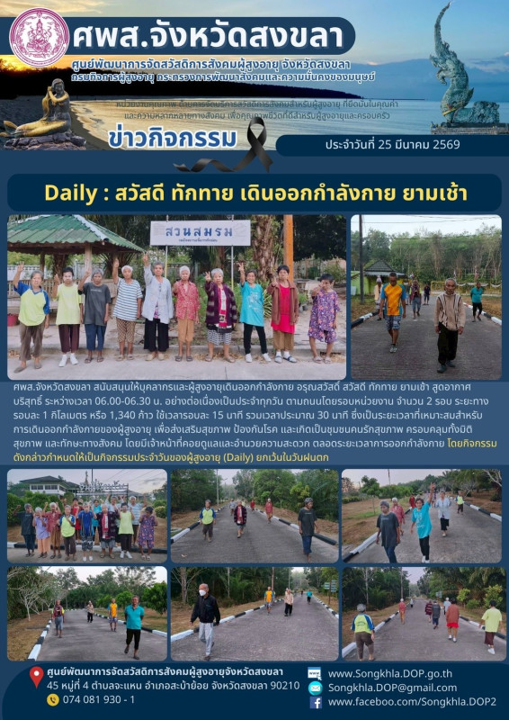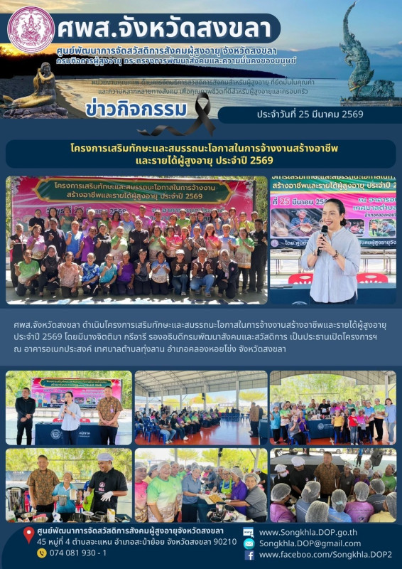 ศพส.จังหวัดสงขลา ขอรายงานกิจกรรม ประจำวันที่ 25 มีนาคม 2569 จำนวน 3 กิจกรรม ดังนี้