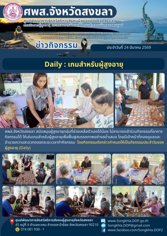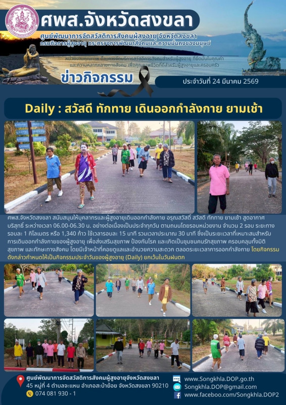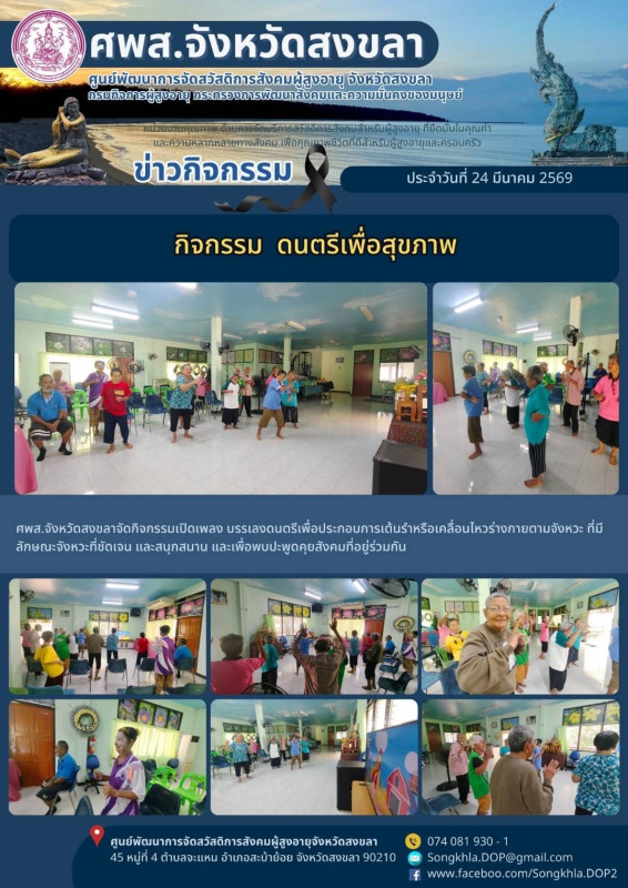 ศพส.จังหวัดสงขลา ขอรายงานกิจกรรม ประจำวันที่ 24 มีนาคม 2569 จำนวน 5 กิจกรรม ดังนี้