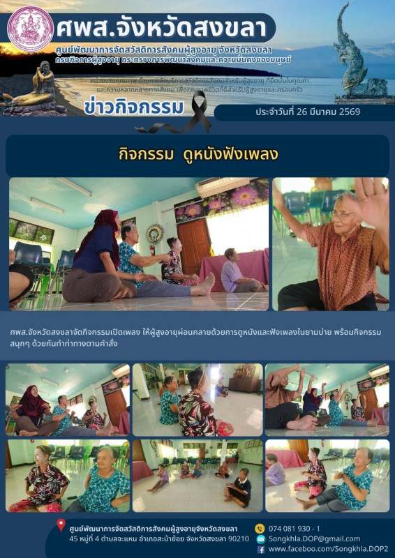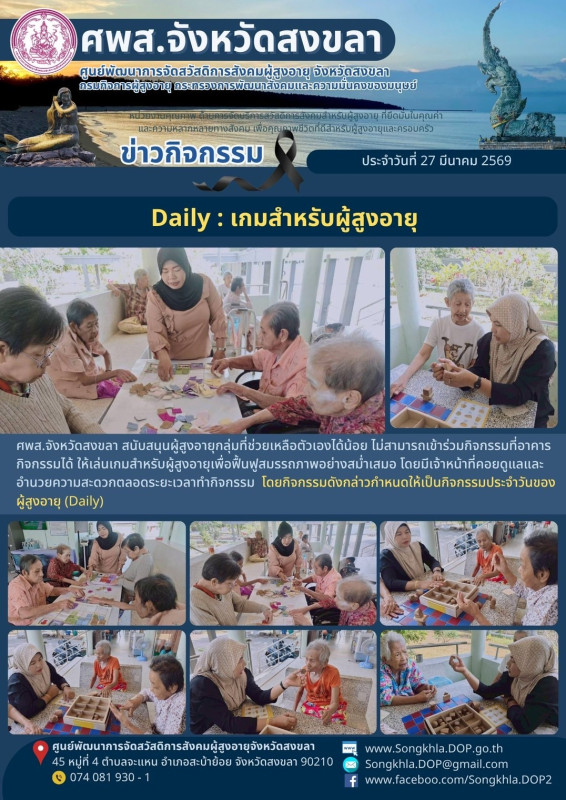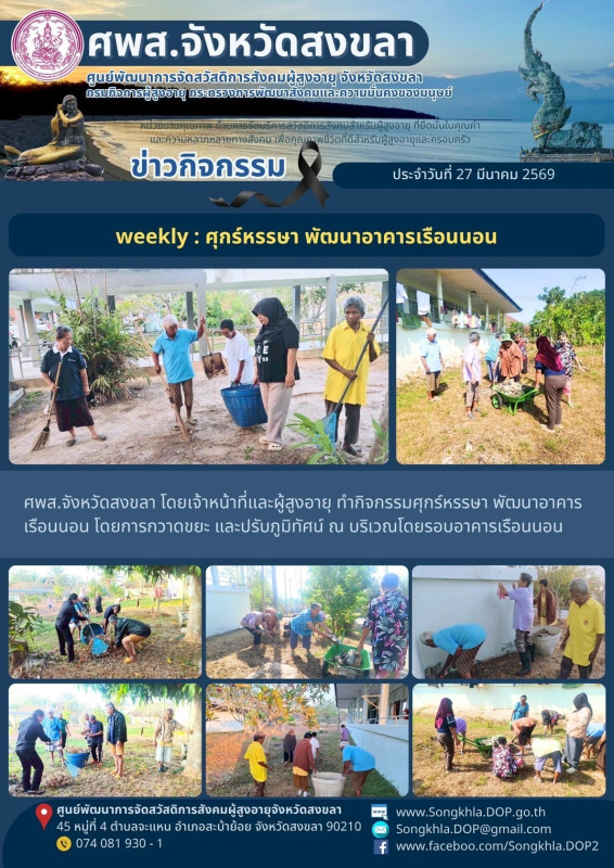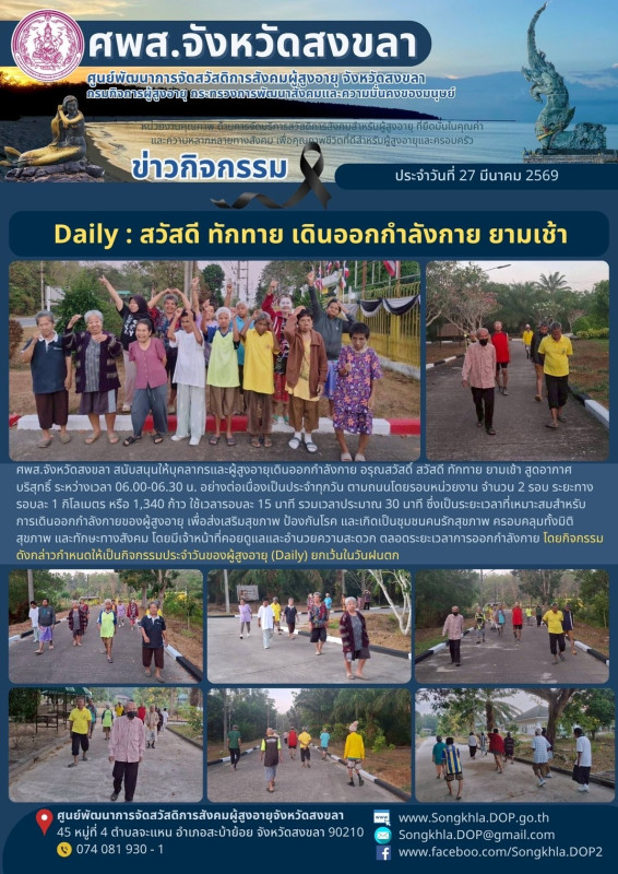 ศพส.จังหวัดสงขลา ขอรายงานกิจกรรม ประจำวันที่ 27 มีนาคม 2569 จำนวน 6 กิจกรรม ดังนี้