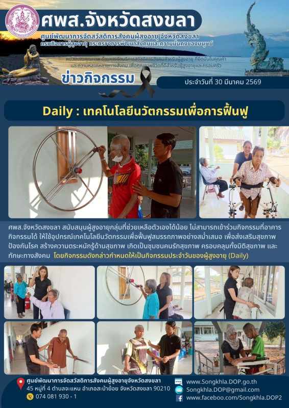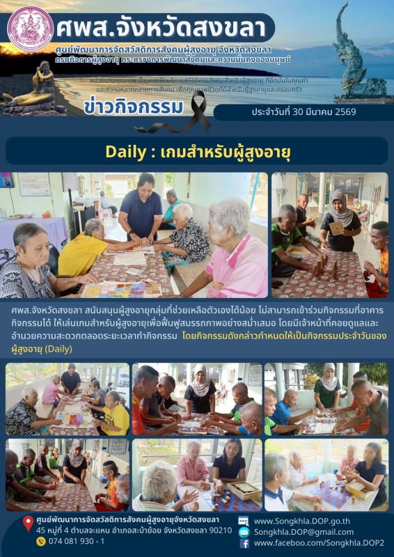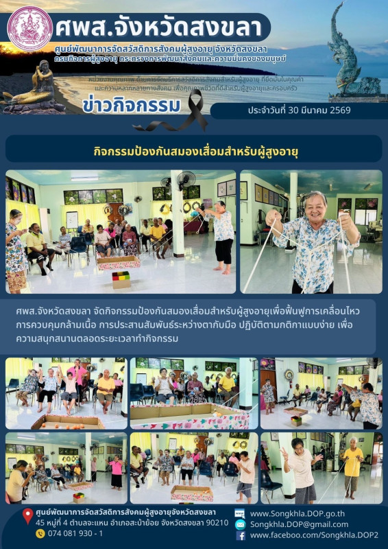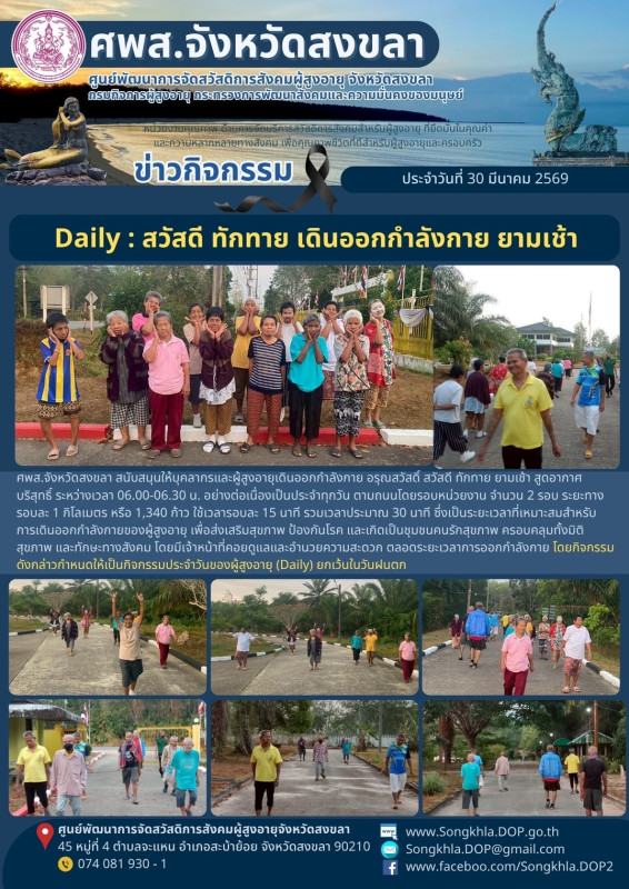ศพส.จังหวัดสงขลา ขอรายงานกิจกรรม ประจำวันที่ 30 มีนาคม 2569 จำนวน 7 กิจกรรม ดังนี้