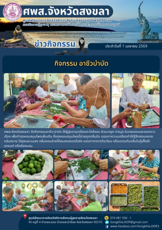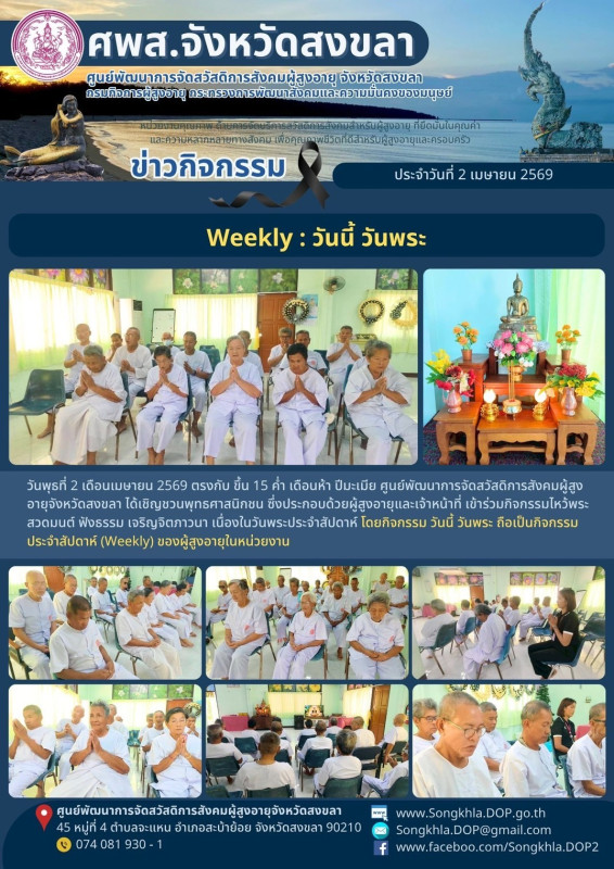 ศพส.จังหวัดสงขลา ขอรายงานกิจกรรม ประจำวันที่ 2 เมษายน 2569 จำนวน 4 กิจกรรม ดังนี้