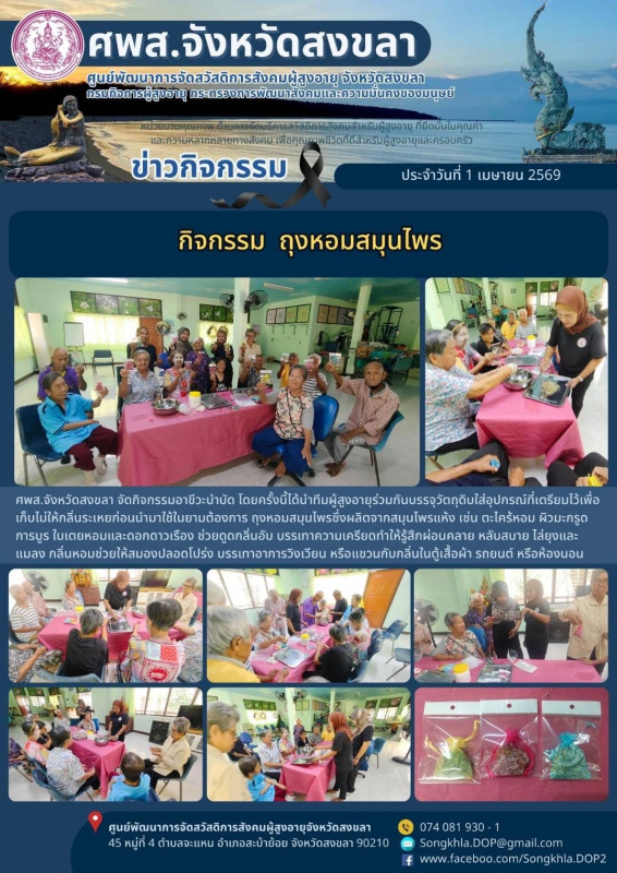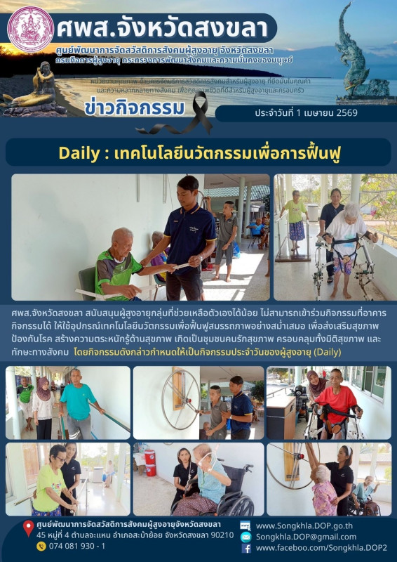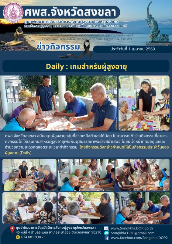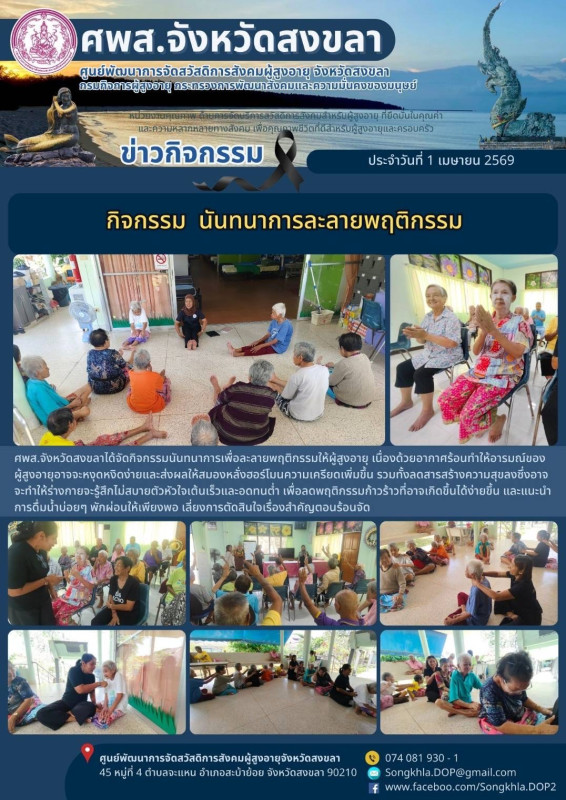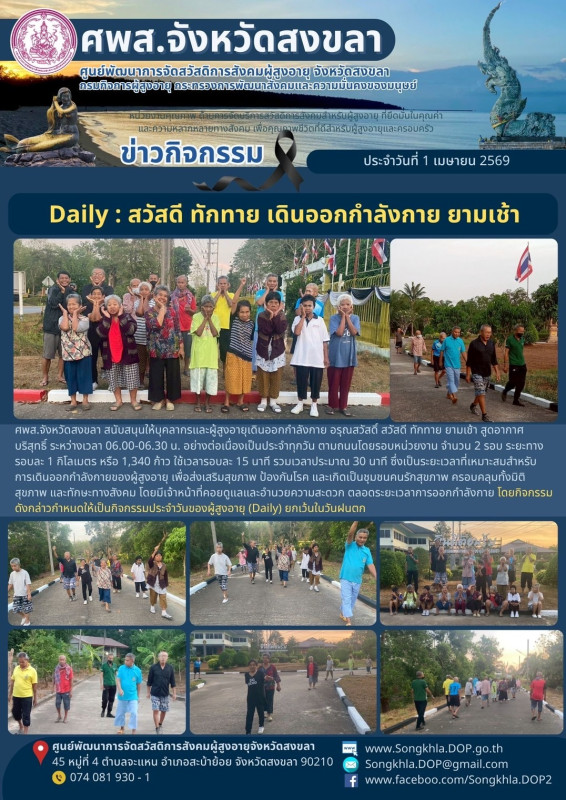 ศพส.จังหวัดสงขลา ขอรายงานกิจกรรม ประจำวันที่ 1 เมษายน 2569 จำนวน 6 กิจกรรม ดังนี้