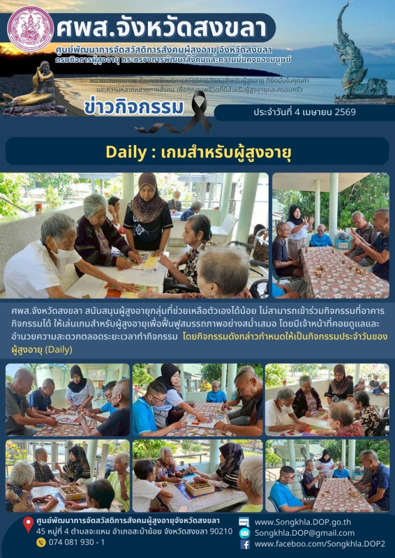 ศพส.จังหวัดสงขลา ขอรายงานกิจกรรม ประจำวันที่ 4 เมษายน 2569 จำนวน 3 กิจกรรม ดังนี้