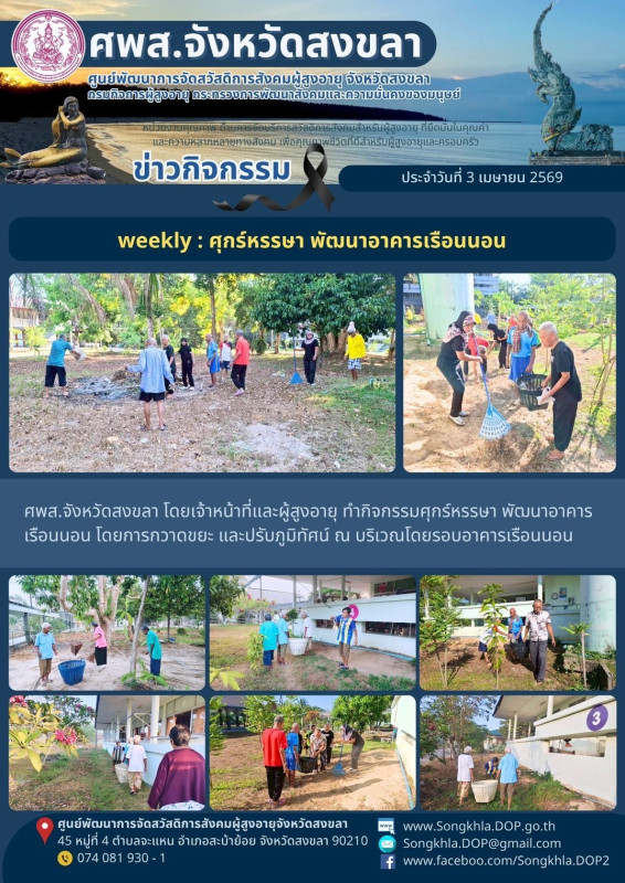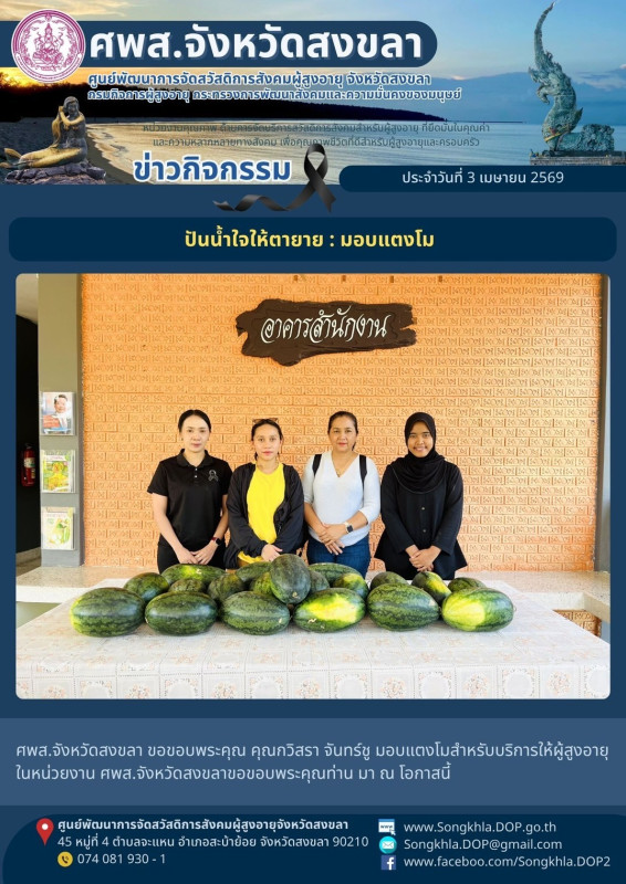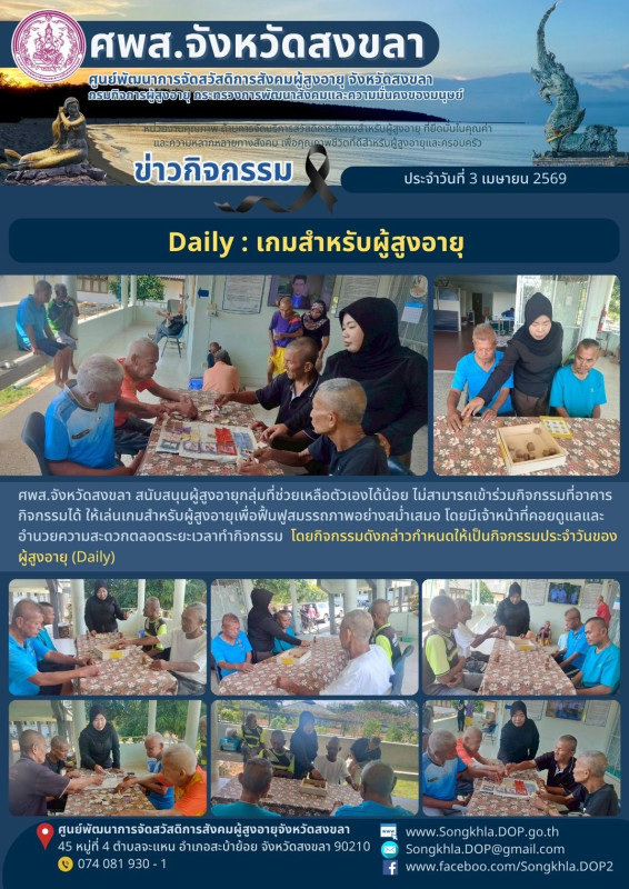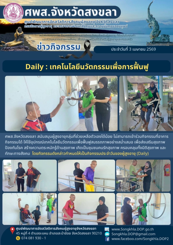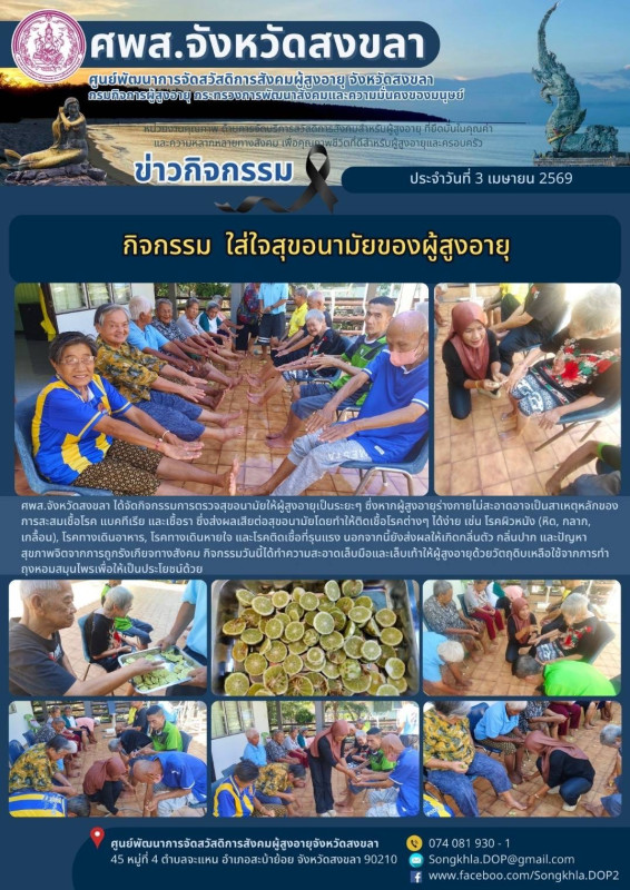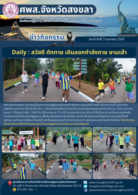 ศพส.จังหวัดสงขลา ขอรายงานกิจกรรม ประจำวันที่ 3 เมษายน 2569 จำนวน 7 กิจกรรม ดังนี้
