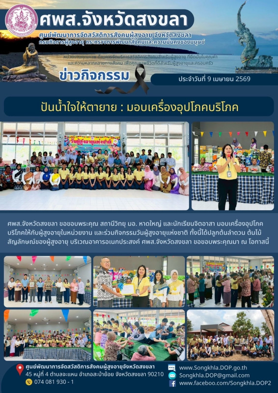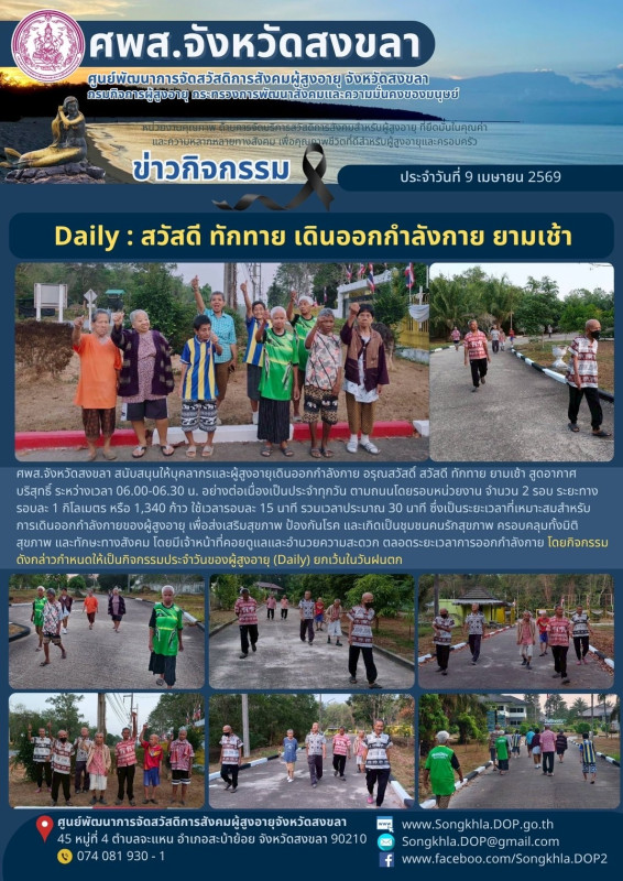 ศพส.จังหวัดสงขลา ขอรายงานกิจกรรม ประจำวันที่ 9 เมษายน 2569 จำนวน 3 กิจกรรม ดังนี้