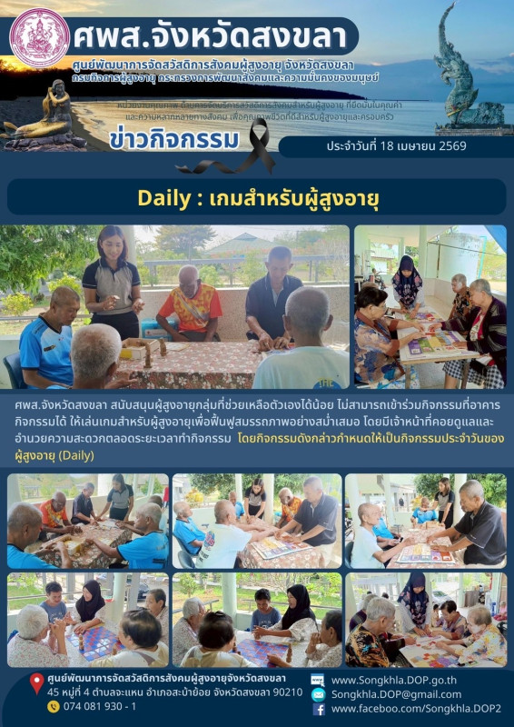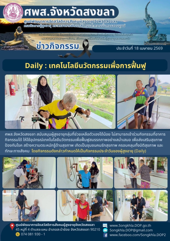 ศพส.จังหวัดสงขลา ขอรายงานกิจกรรม ประจำวันที่ 18 เมษายน 2569 จำนวน 3 กิจกรรม ดังนี้