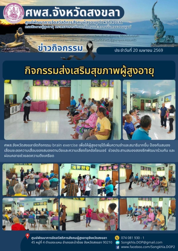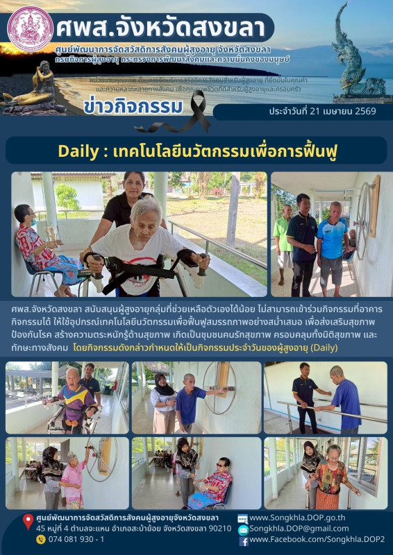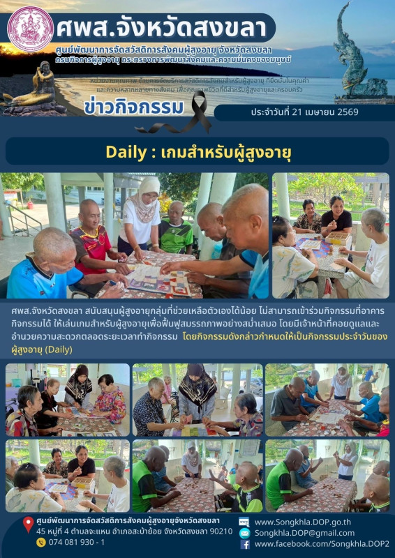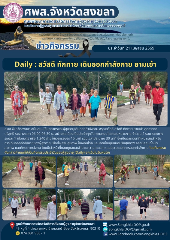 ศพส.จังหวัดสงขลา ขอรายงานกิจกรรม ประจำวันที่ 21 เมษายน 2569 จำนวน 5 กิจกรรม ดังนี้